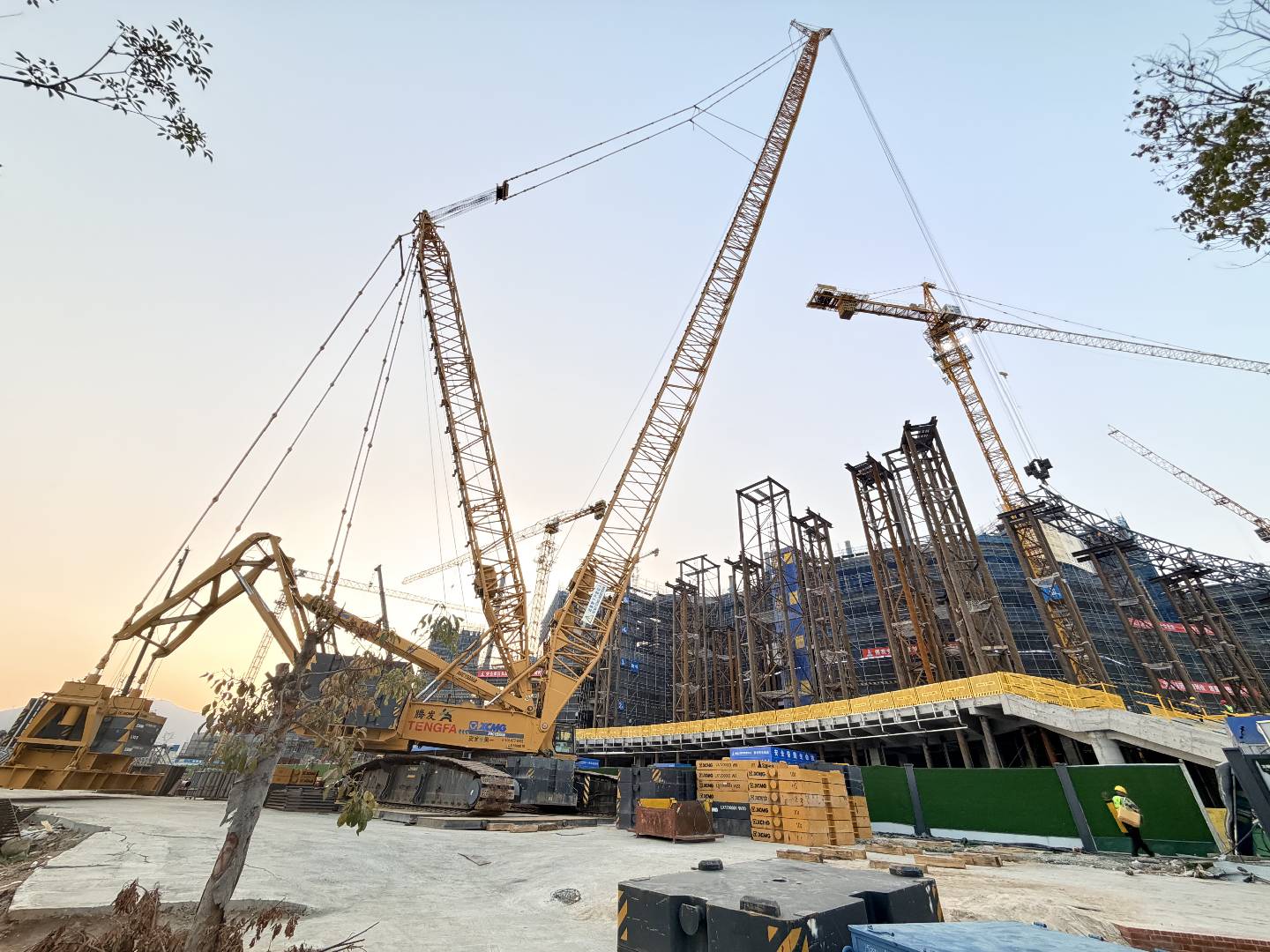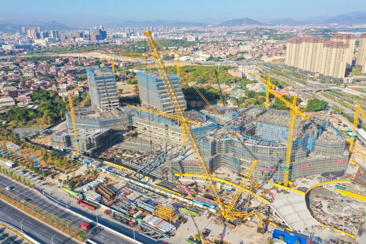 近日,在泉州演艺剧场综合体建设现场,上海腾发提供的1000吨级履带起重机巍然矗立,以稳健精准的吊装表现,助力剧场主体结构封顶。